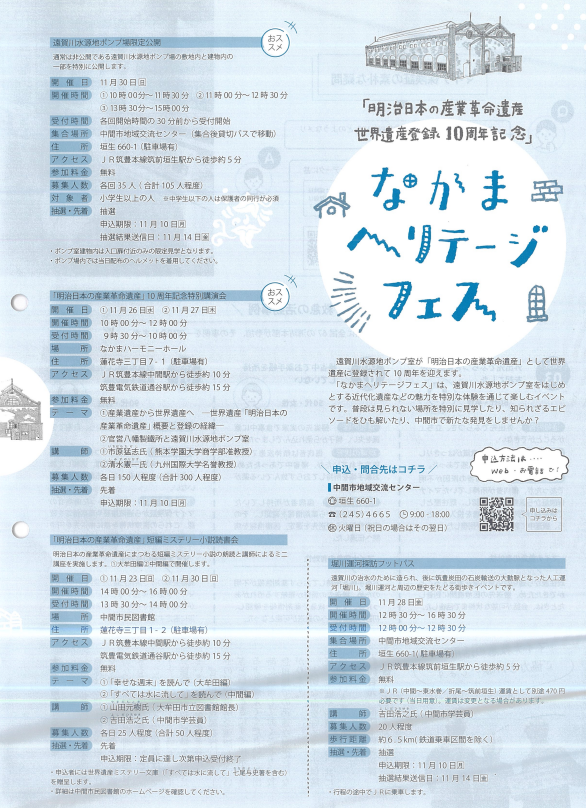 「なかまヘリテージフェス」は、遠賀川水源地ポンプ室をはじめとする近代化遺産